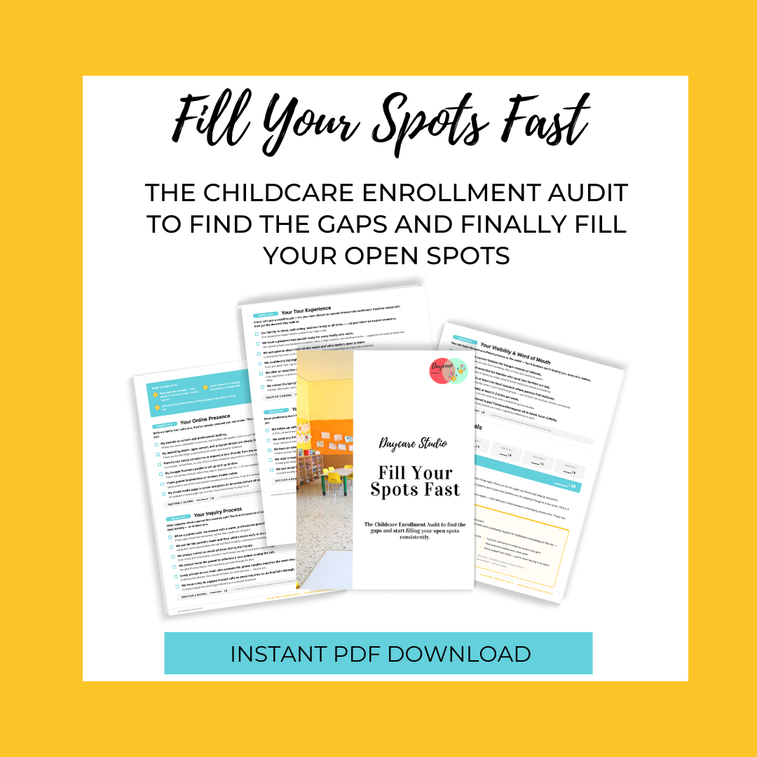 Grab my FREE Fill Your Spots Fast Enrollment Audit to quickly uncover what’s not working and start enrolling more families consistently using simple strategies that actually work.
